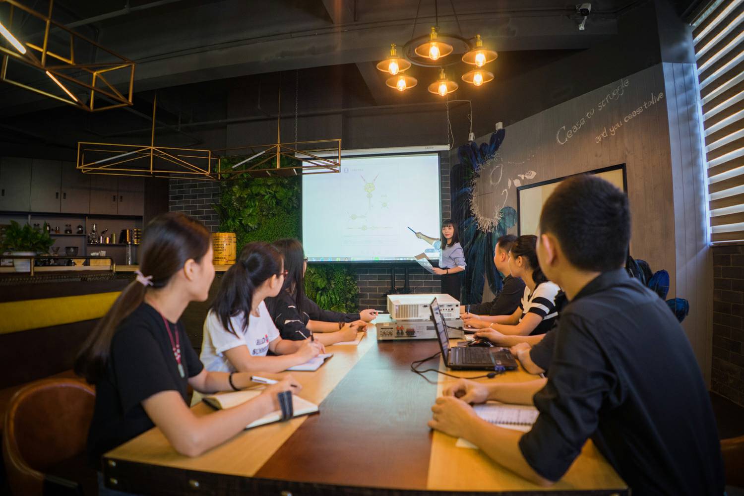 设立咖啡厅,创意的装修,打造了设计创研中心的概念。为员工打造一个人文关怀的企业文化。